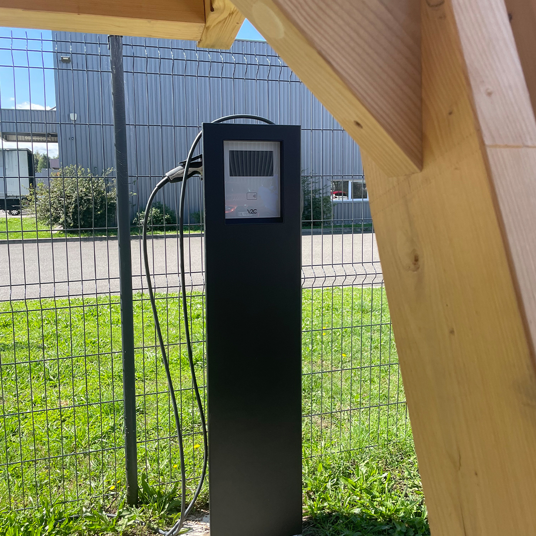 La borne de recharge peut être installée directement sous le carport solaire. Grâce à une configuration bien dimensionnée (15 à 20 m² de panneaux produisent 2 500 à 3 500 kWh/an), il est possible de couvrir facilement 10 000 à 15 000 km/an pour une voiture électrique, tout en protégeant votre véhicule et en optimisant le confort d’utilisation.