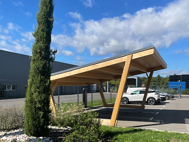 Un carport solaire est un abri voiture moderne, que nous vous proposons en bois, surmonté de panneaux photovoltaïques. Cette structure protège le véhicule des intempéries tout en produisant de l’électricité gratuitement pour la maison ou l’entreprise et la recharge de la voiture électrique.