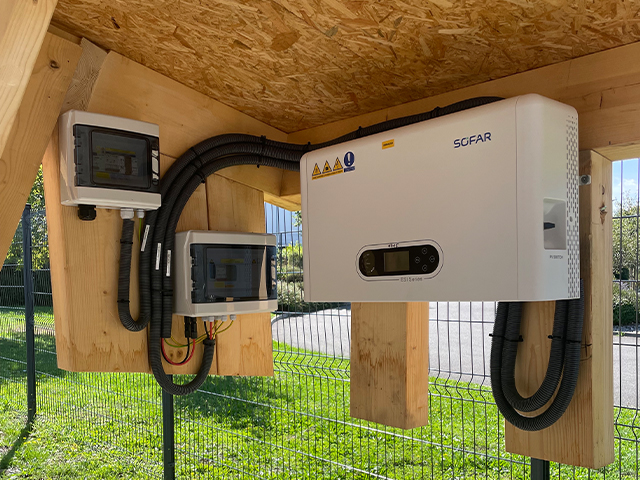 Les panneaux intégrés sur la toiture du carport captent l’énergie solaire et la transforment en électricité utilisable immédiatement ou stockée dans des batteries. Ce système permet d’alimenter une borne de recharge pour véhicule électrique, mais aussi de réduire sa facture d’électricité et d’augmenter l’autonomie énergétique du lieu.